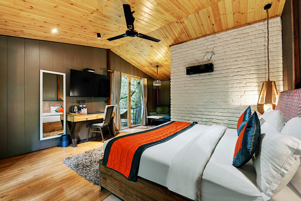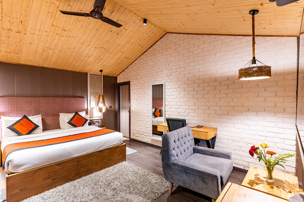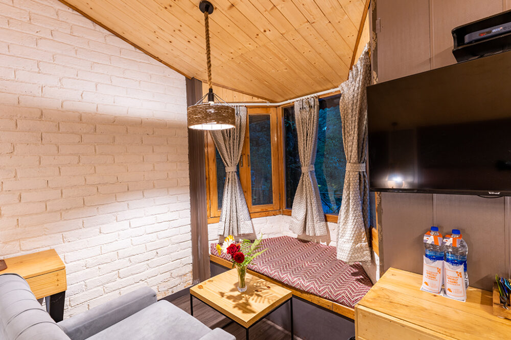Step into modern sophistication at our Premium Cottage, where bright and lively interiors meet rustic exteriors inspired by the surrounding forest. With ample indoor seating, a private scenic balcony and refined amenities, this space is ideal for couples or small families seeking relaxation with a hint of luxury. Soothing forest sounds and elegant furnishings ensure a memorable stay.